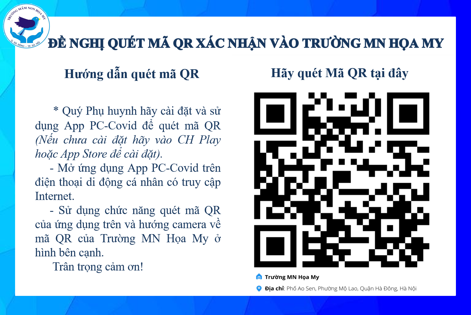 - 100% phụ huynh, CBGVNV thực hiện khai báo y tế bằng cách quét mã QR tại cổng trường.
