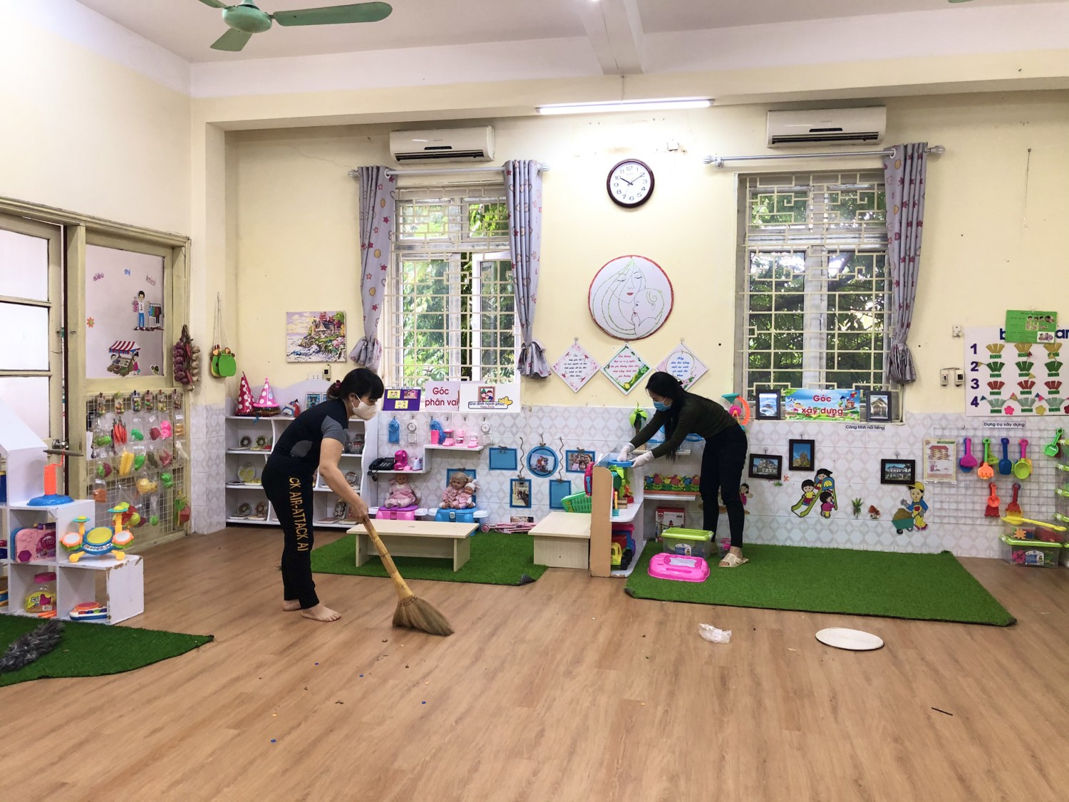 - Phun thuốc diệt muỗi, khử khuẩn toàn bộ trường học: khu vực hành lang, lớp học, khu vực bếp ăn, các phòng chức năng…