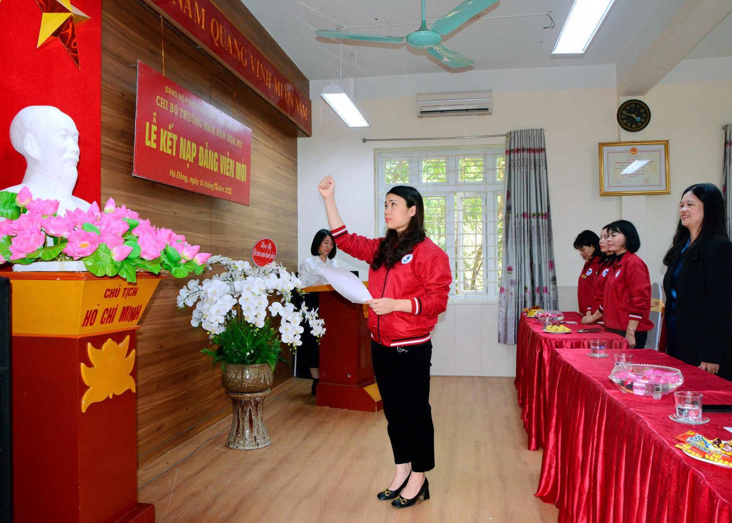 CHI BỘ TRƯỜNG MẦM NON HỌA MY TỔ CHỨC LỄ KẾT NẠP ĐẢNG VIÊN MỚI