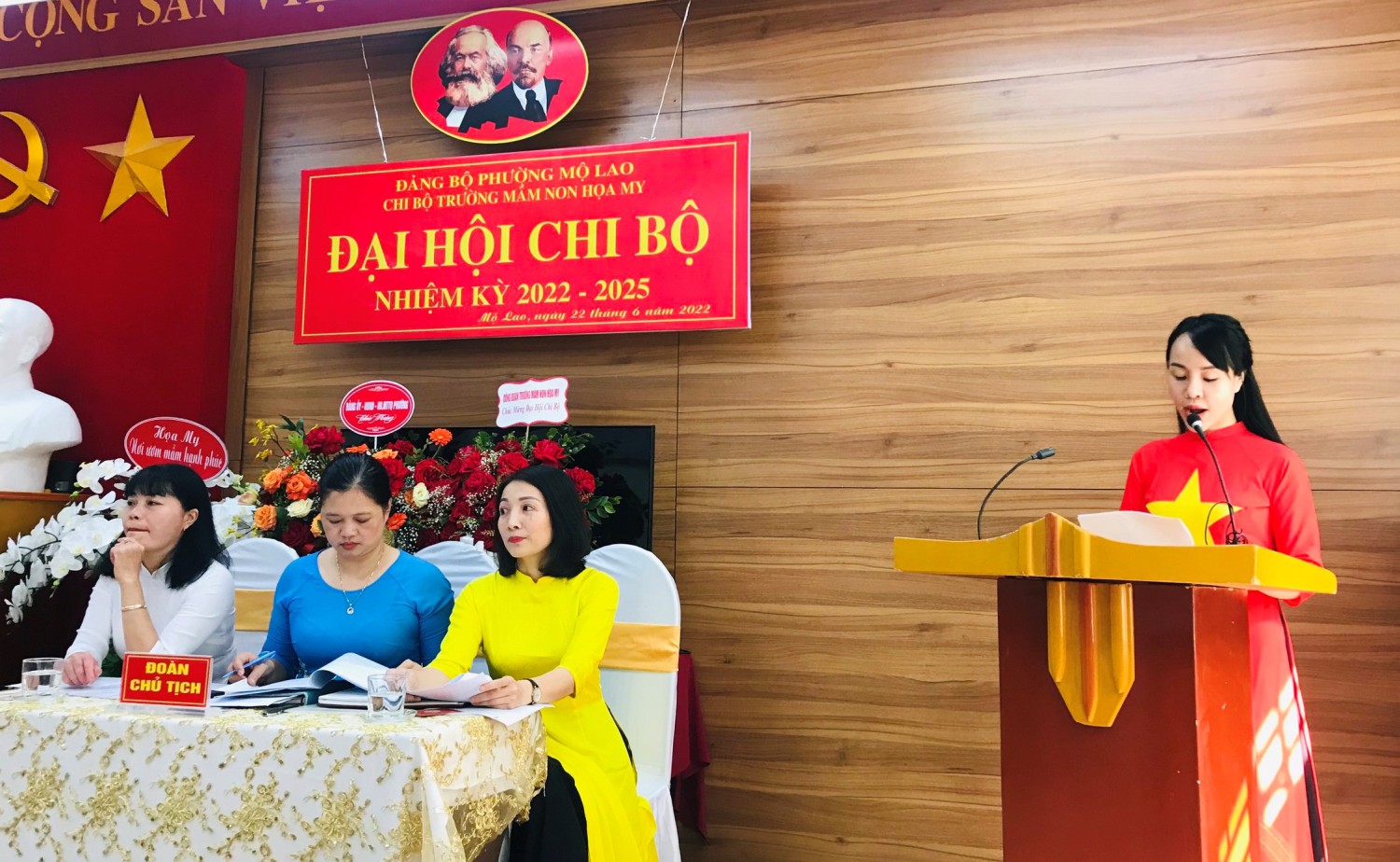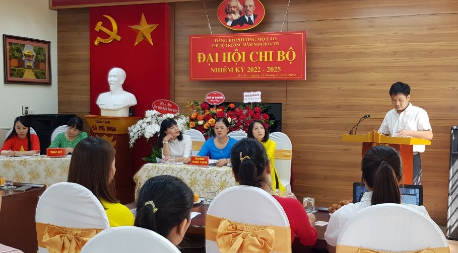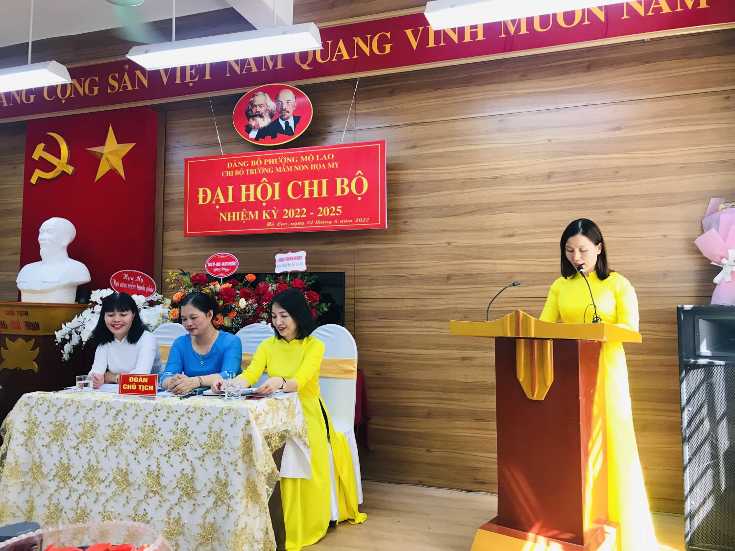 Phát biểu chỉ đạo đại hội, đồng chí Nguyễn Quang Tuấn, Đảng ủy viên, Phó Chủ tịch UBND phường Mộ Lao đã ghi nhận, đánh giá cao sự nỗ lực, cố gắng của tập thể Chi bộ Trường Mầm non Họa My đã thực hiện thắng lợi các mục tiêu mà Nghị quyết đại hội nhiệm kỳ 2020-2022 đã đề ra. Đồng thời biểu dương sự đoàn kết, nhất trí cao trong tập thể chi bộ của nhà trường đặc biệt là lãnh đạo thực hiện nhiệm vụ của Chi ủy trong nhiệm kỳ qua. Đồng chí yêu cầu cán bộ, Đảng viên của Chi bộ Nhà trường phát huy tinh thần trách nhiệm thực hiện tốt nghị quyết Đại hội chi bộ nhiệm kỳ 2022-2025; Tập trung chỉ đạo thực hiện tốt nhiệm vụ năm học.