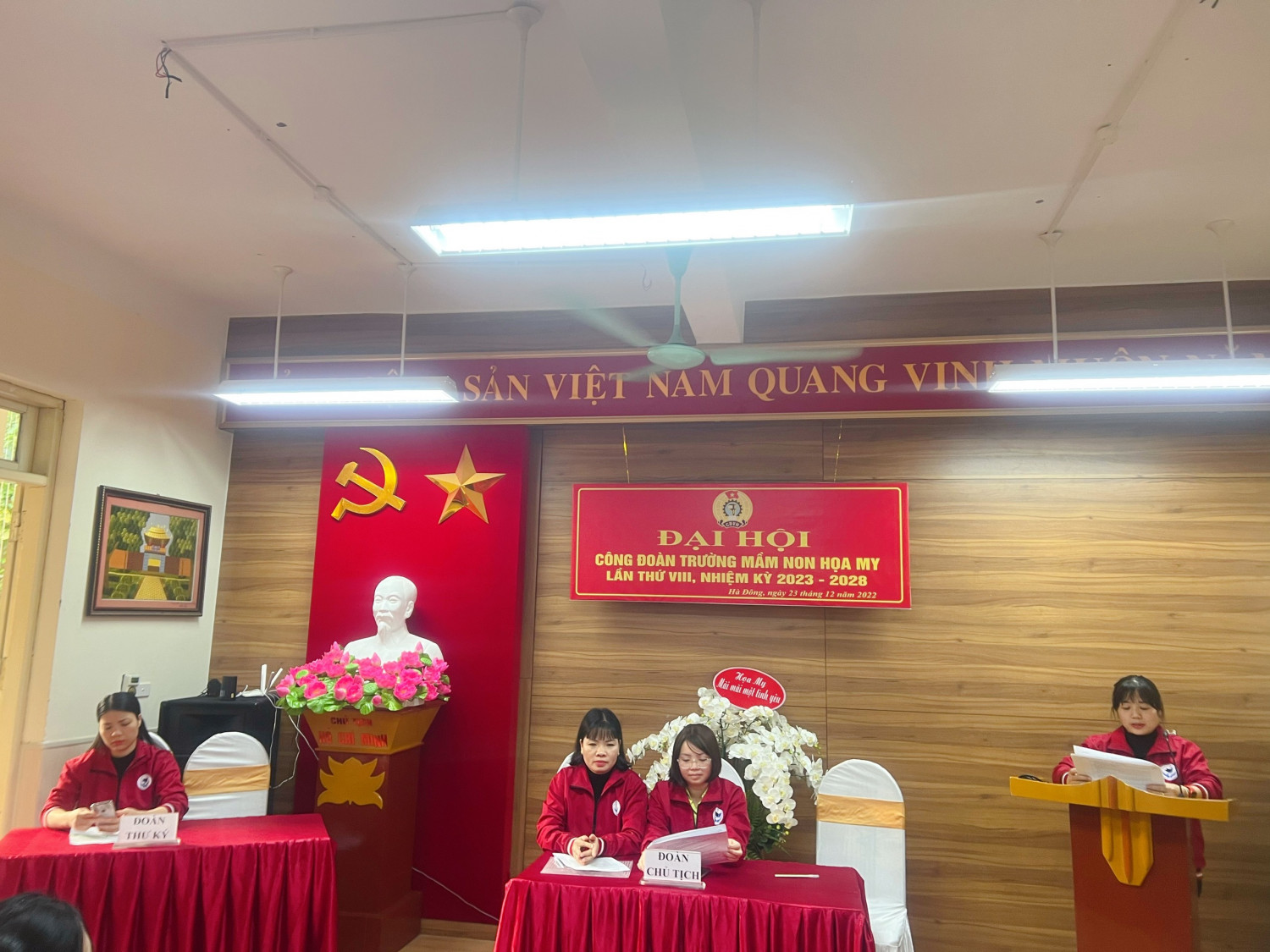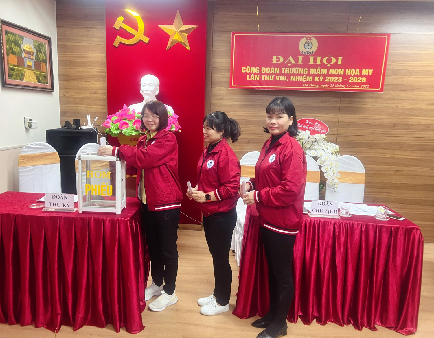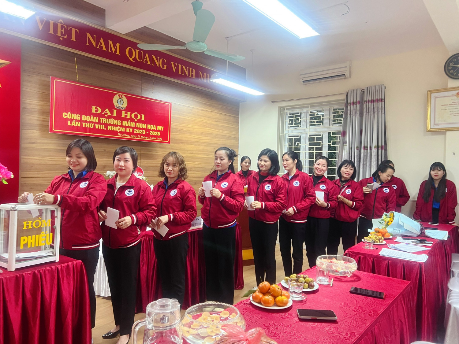 Đại hội diễn ra nghiêm túc, đúng trình tự, mỗi công đoàn viên đã ý thức rất rõ ràng quyền và nghĩa vụ của mình trong việc bầu ra BCH công đoàn, Chủ tịch công đoàn, Phó chủ tịch Công đoàn và Ủy ban kiểm tra Công đoàn Trường mầm non Họa My nhiệm kỳ 2023-2028.