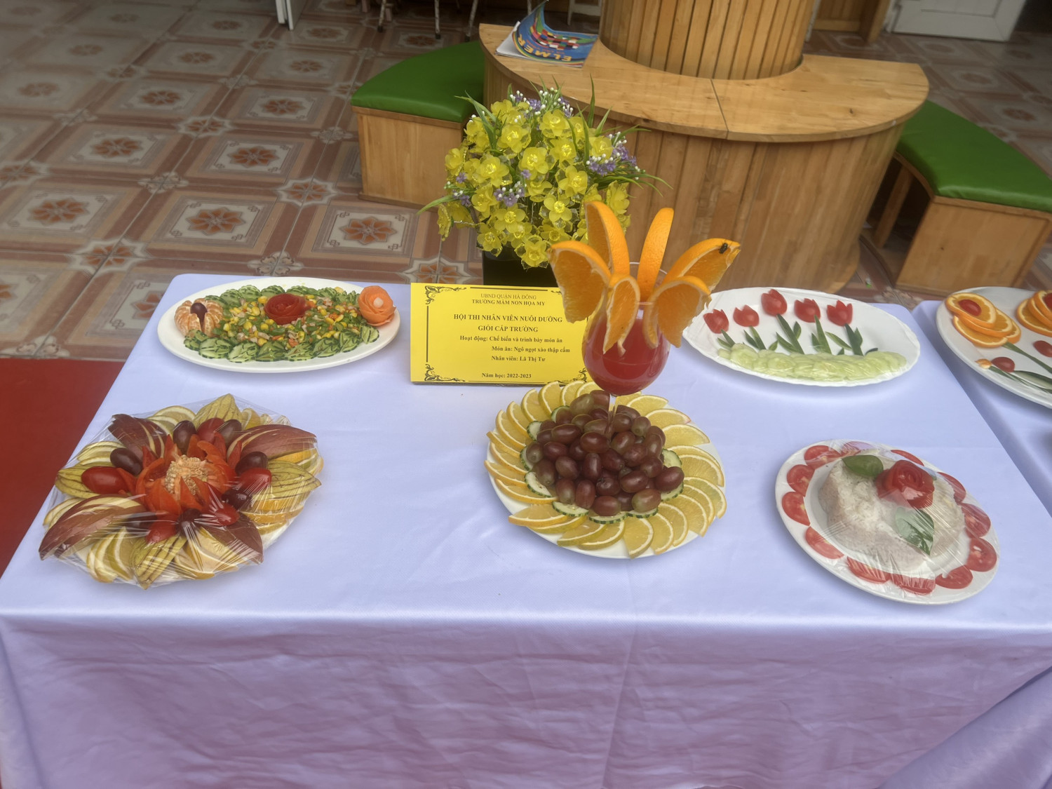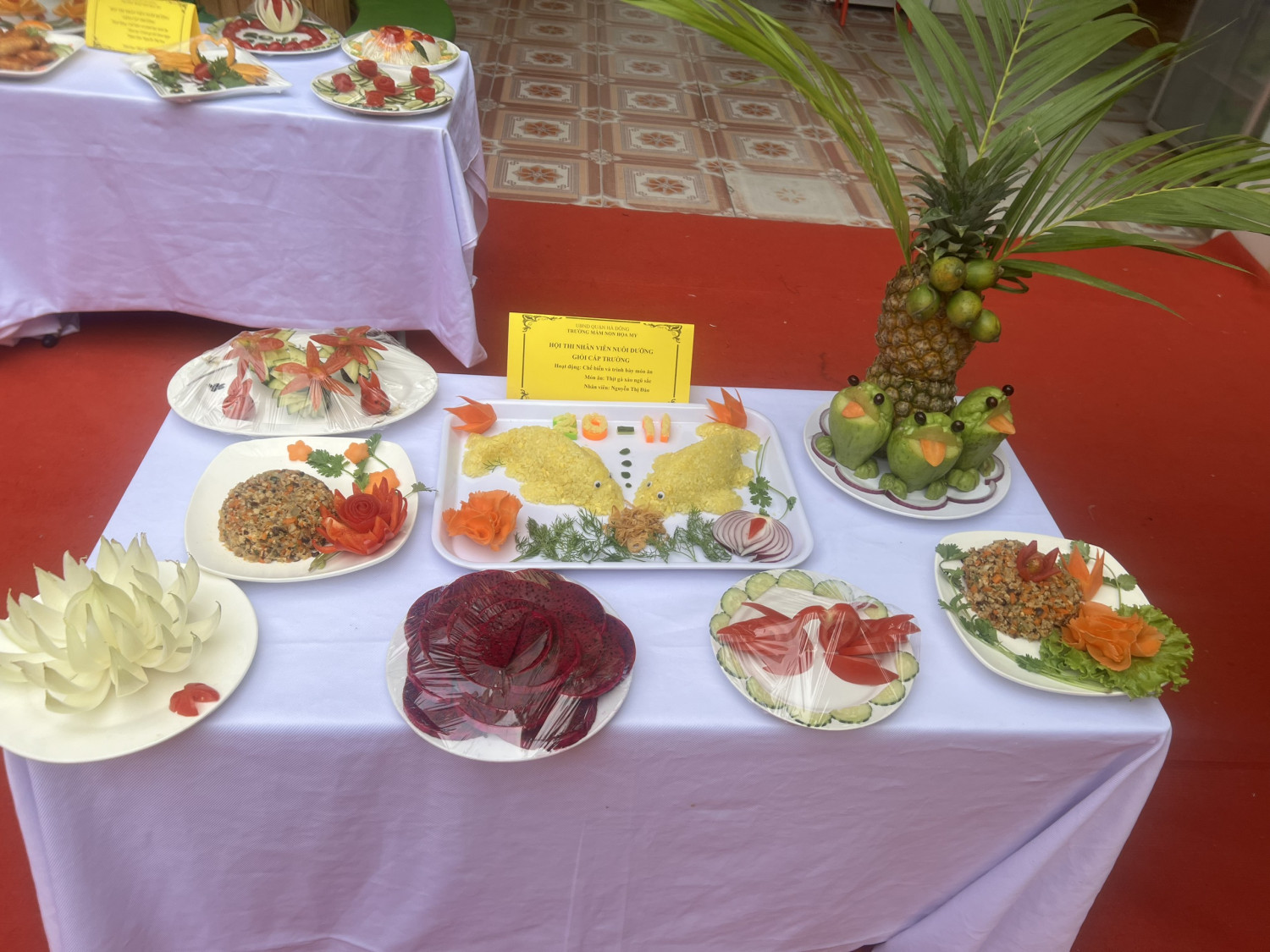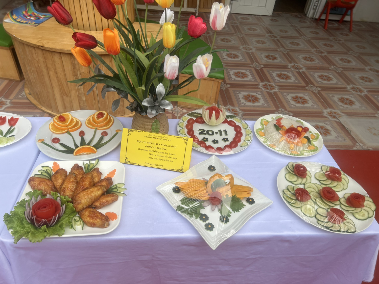 Hội thi "Nhân viên nuôi dưỡng giỏi" cấp trường năm học 2022-2023 với sự tham gia của các đồng chí nhân viên nuôi dưỡng đang làm việc tại bếp ăn của trường. Các đồng chí nhân viên dự thi đã thể hiện kỹ thuật cùng với sự sáng tạo qua việc chế biến những món ăn cho trẻ. Các món ăn đảm bảo cân đối các chất, đa dạng về thực phẩm và đảm bảo nhu cầu năng lượng hằng ngày cho trẻ; Đổi mới, sáng tạo trong cách trình bày tạo sự lôi cuốn, hấp dẫn cũng như sự phối hợp dây chuyền nhịp nhàng để hoàn thành tốt công việc được giao. Cùng những kinh nghiệm tích lũy, thao tác thành thạo khi sử dụng những trang thiết bị phục vụ công tác chế biến món ăn cho trẻ hàng ngày. Với sự cố gắng, tâm huyết của đội ngũ nhân viên nấu ăn đã giúp Hội thi " Nhân viên nuôi dưỡng giỏi" cấp trường năm học 2022-2023 thành công tốt đẹp.