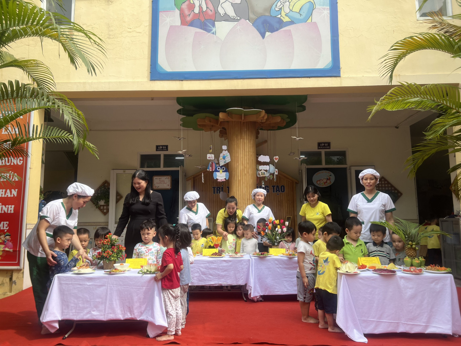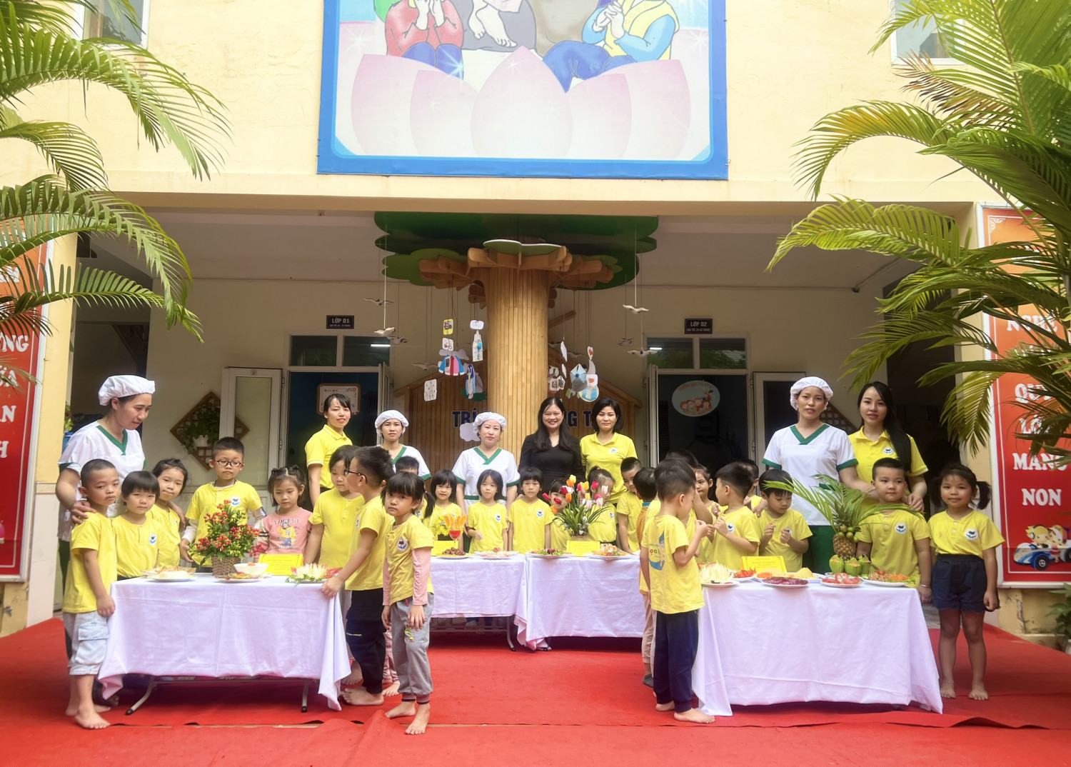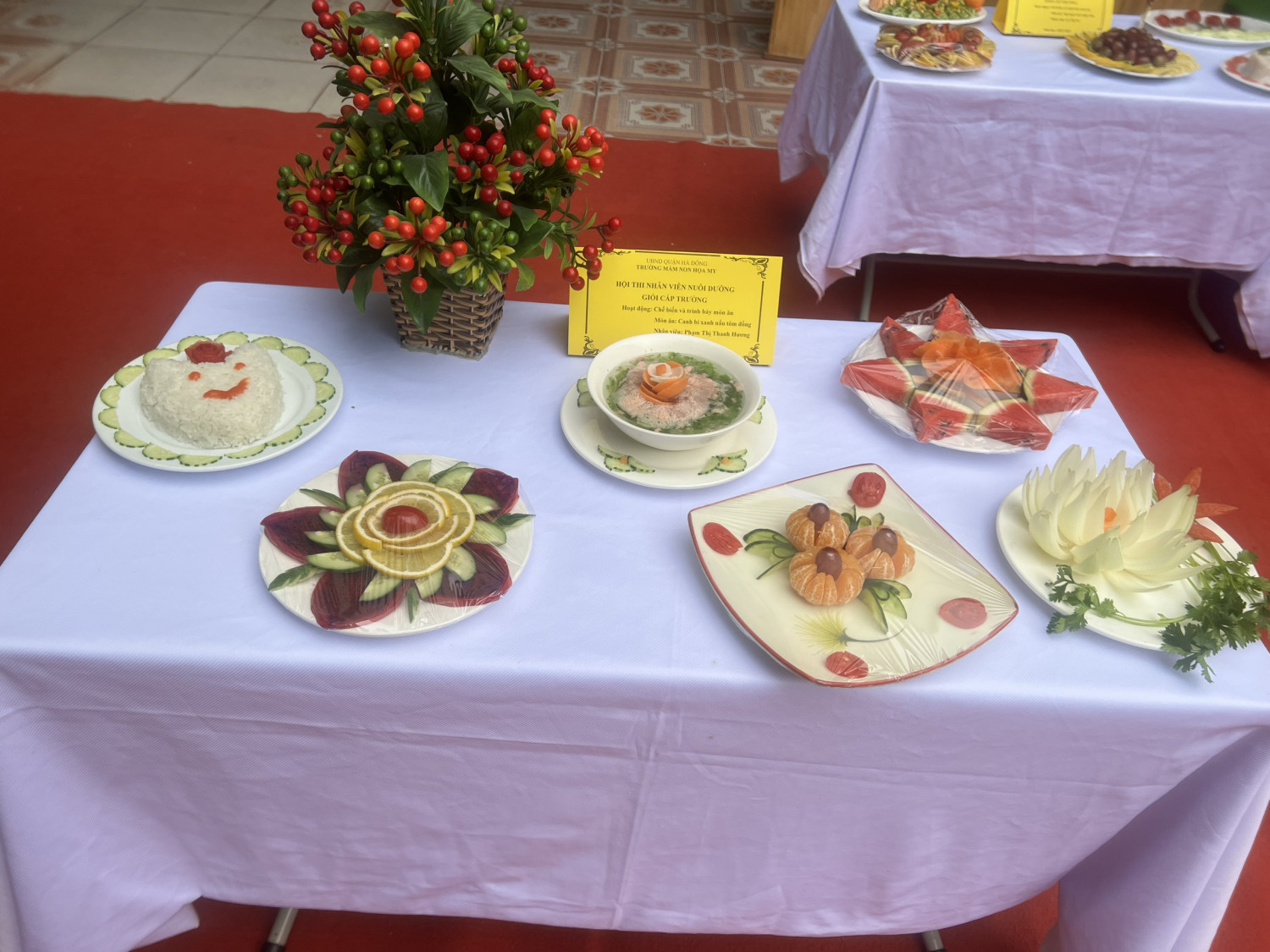 Hội thi "Nhân viên nuôi dưỡng giỏi" cấp trường năm học 2022-2023 với sự tham gia của các đồng chí nhân viên nuôi dưỡng đang làm việc tại bếp ăn của trường. Các đồng chí nhân viên dự thi đã thể hiện kỹ thuật cùng với sự sáng tạo qua việc chế biến những món ăn cho trẻ. Các món ăn đảm bảo cân đối các chất, đa dạng về thực phẩm và đảm bảo nhu cầu năng lượng hằng ngày cho trẻ; Đổi mới, sáng tạo trong cách trình bày tạo sự lôi cuốn, hấp dẫn cũng như sự phối hợp dây chuyền nhịp nhàng để hoàn thành tốt công việc được giao. Cùng những kinh nghiệm tích lũy, thao tác thành thạo khi sử dụng những trang thiết bị phục vụ công tác chế biến món ăn cho trẻ hàng ngày. Với sự cố gắng, tâm huyết của đội ngũ nhân viên nấu ăn đã giúp Hội thi " Nhân viên nuôi dưỡng giỏi" cấp trường năm học 2022-2023 thành công tốt đẹp.