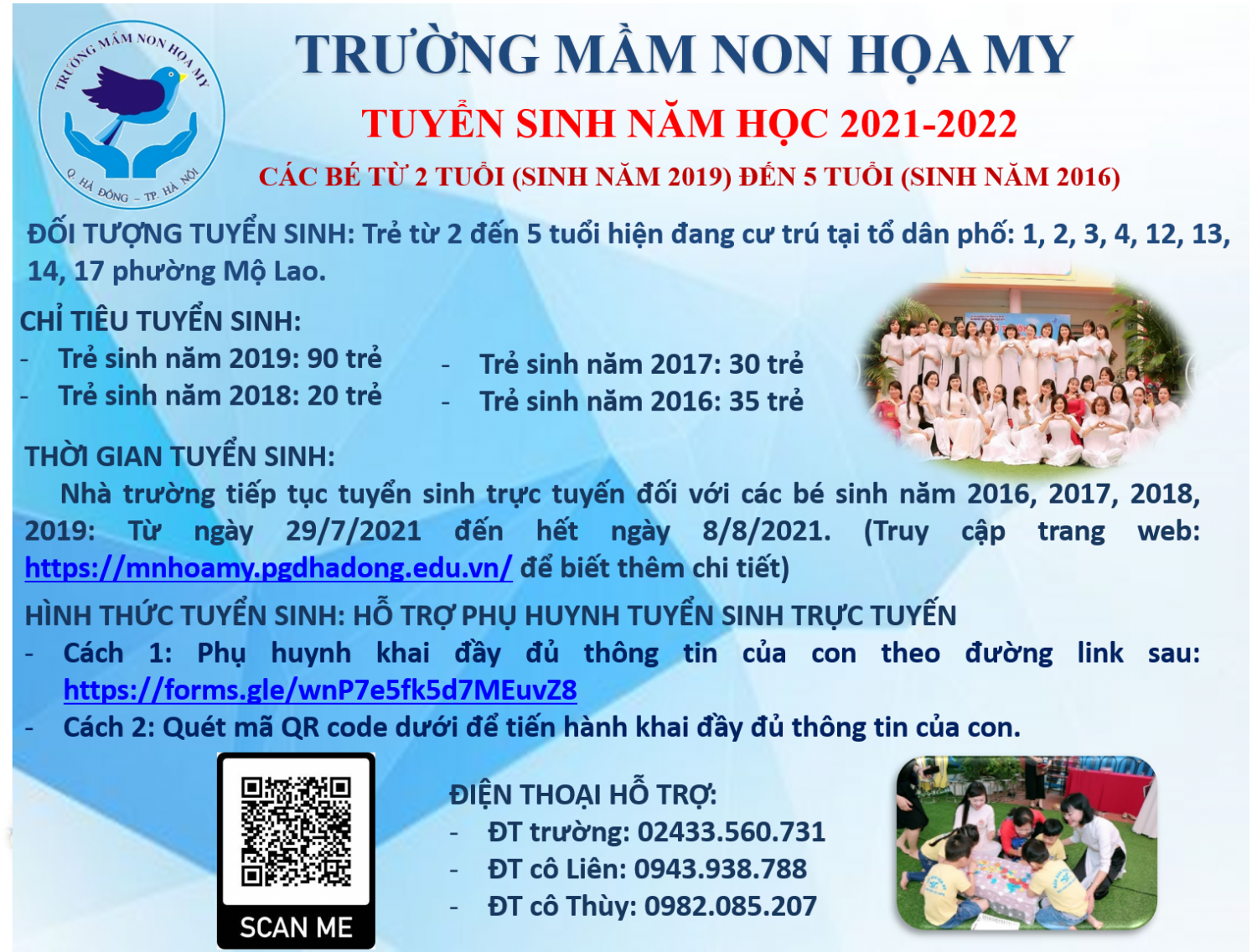 Do hiện tại dịch bệnh phức tạp Trường Mầm non Họa My điều chỉnh kế hoạch tuyển sinh như sau: