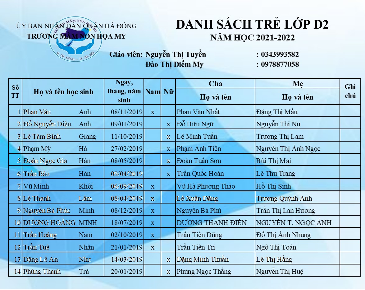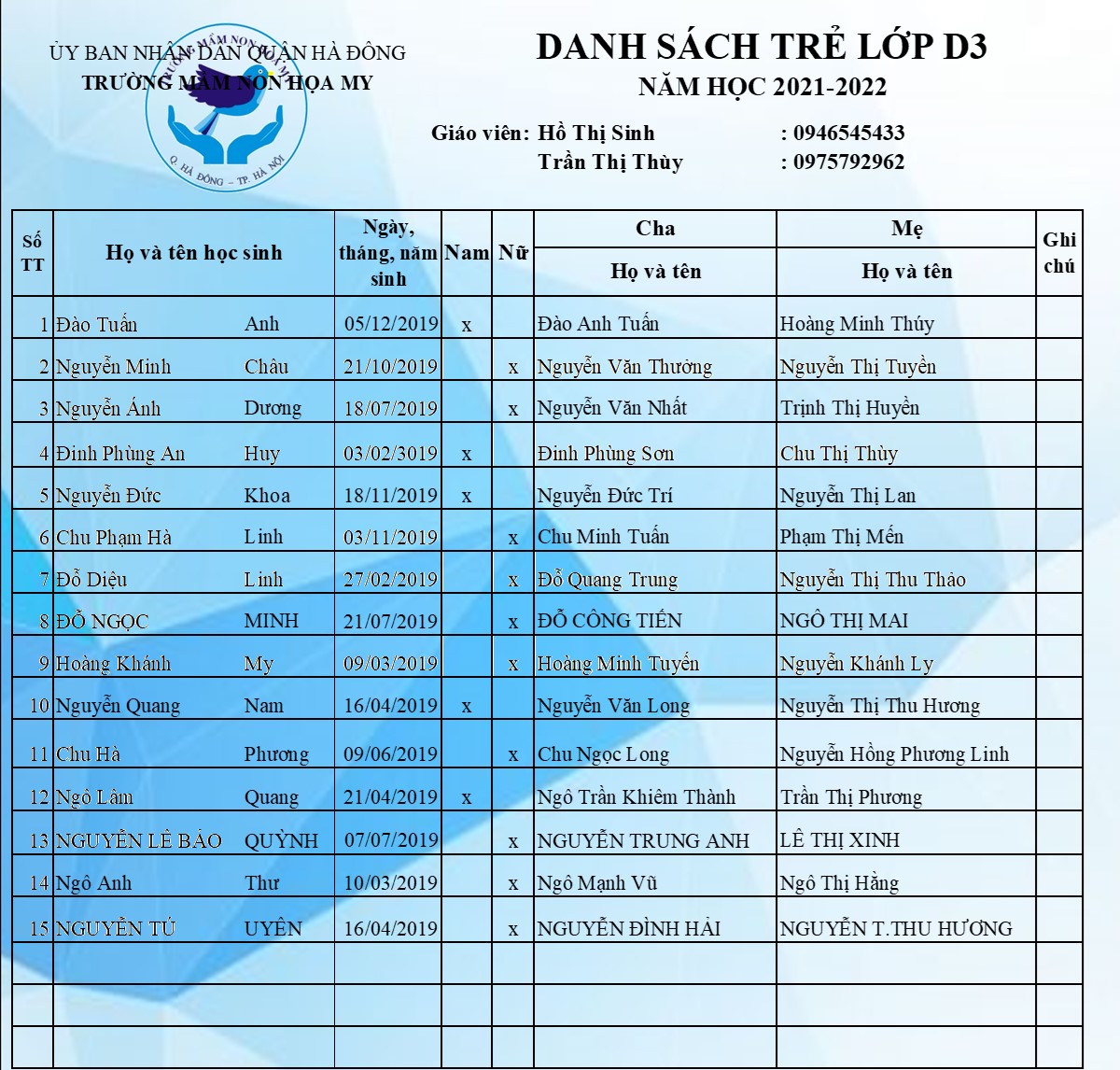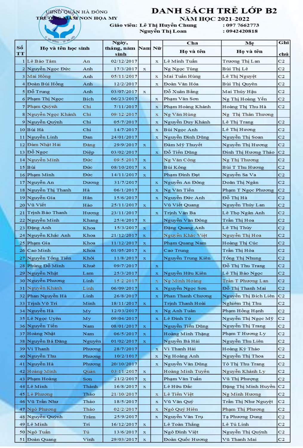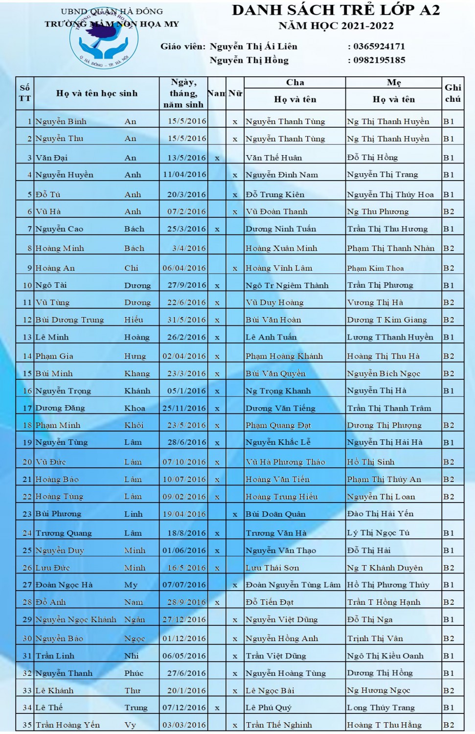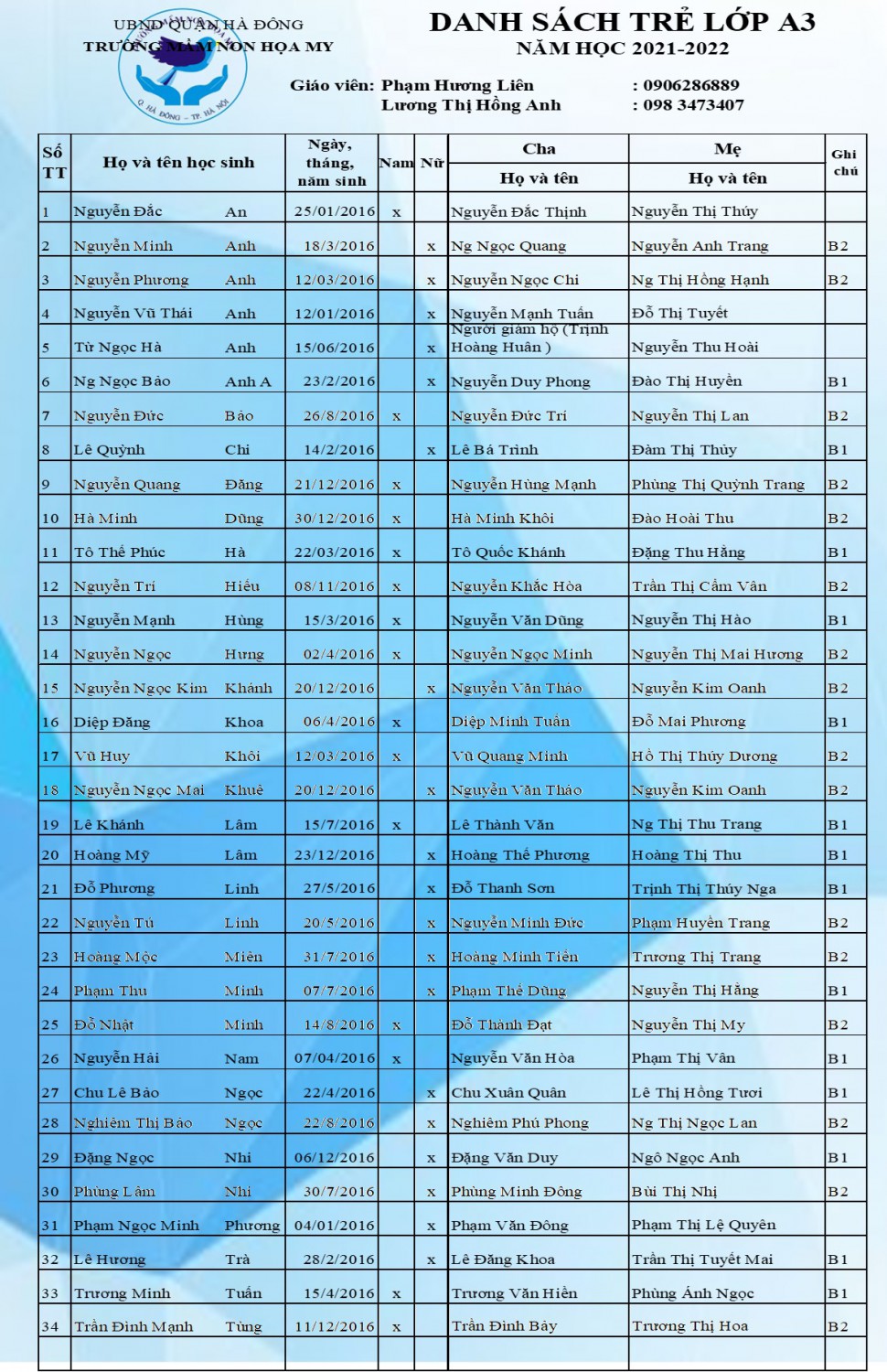 Dưới đây là kết quả tuyển sinh, danh sách các lớp, giáo viên chủ nhiệm năm học 2021-2022: