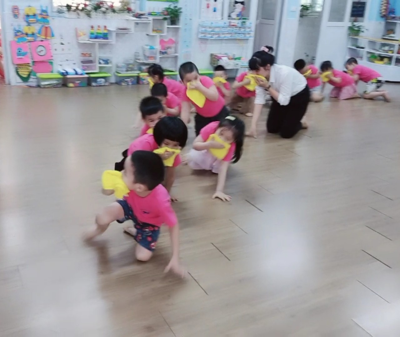 Cô và trẻ bịt khăn men theo tường khi có khói mù mịt để thoát ra ngoài.