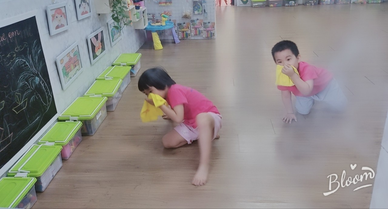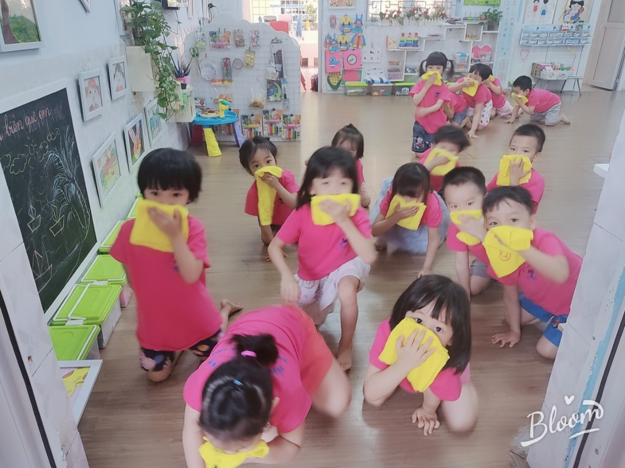 Dạy trẻ cách dùng khăn ẩm che lên miệng và mũi