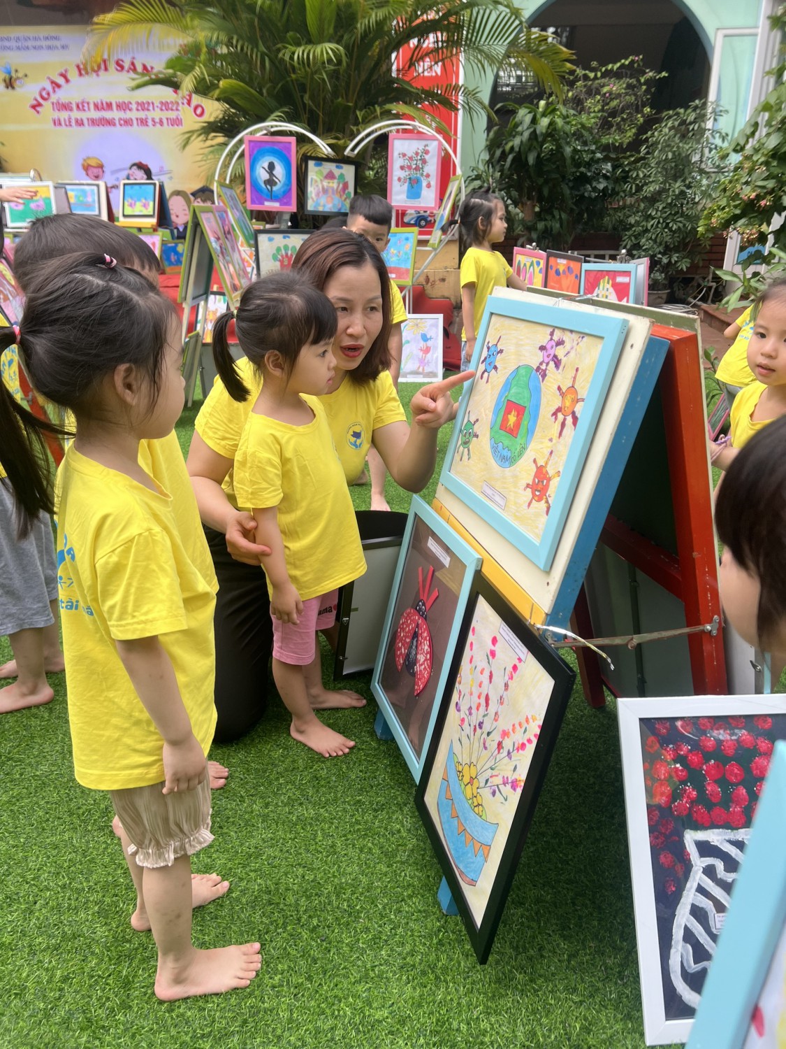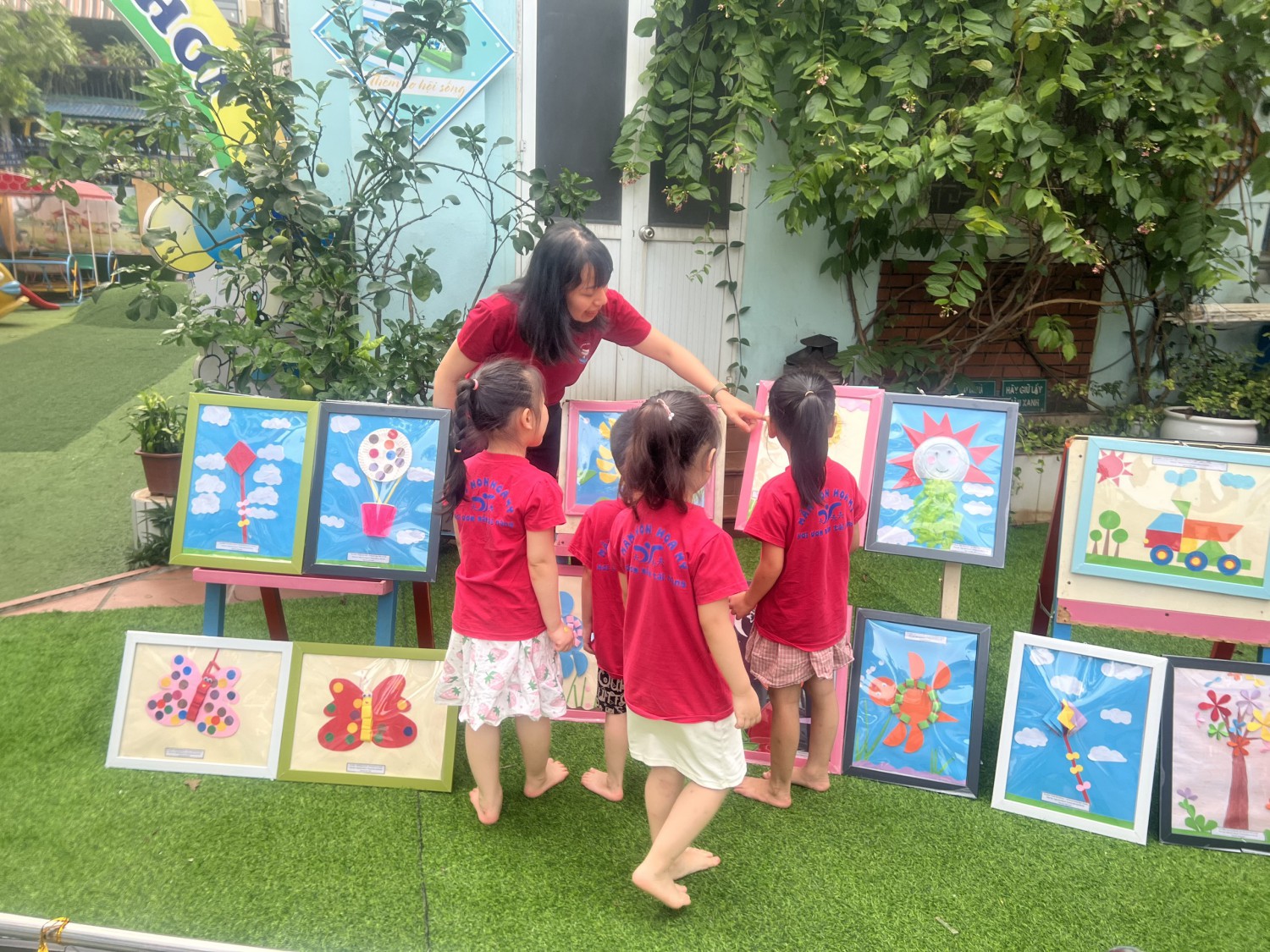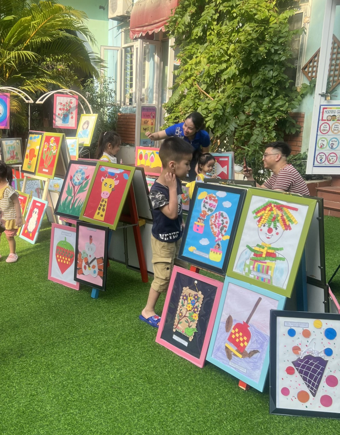 Mỗi một sản phẩm của các bé mang đến buổi triển lãm tranh của nhà trường một nội dung khác nhau. Các sản phẩm phong phú, đa dạng của các bé đã góp phần tạo nên không gian sáng tạo muôn màu sắc, chất liệu của buổi triển lãm tranh thật thú vị và bổ ích. Các bé đến từ các lớp mẫu giáo được các cô giáo lần lượt đưa đi tham quan triển lãm tranh. Những ánh mắt hồn nhiên, ngây thơ trầm trồ ngắm nghía khoe các tác phẩm của cá nhân thể hiện. Các tác phẩm đã giúp các bé được học hỏi thêm rất nhiều kiến thức mới, kỹ năng tạo hình mới, ý tưởng thể hiện nhiều nội dung sáng tạo khác nhau.