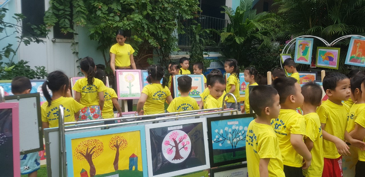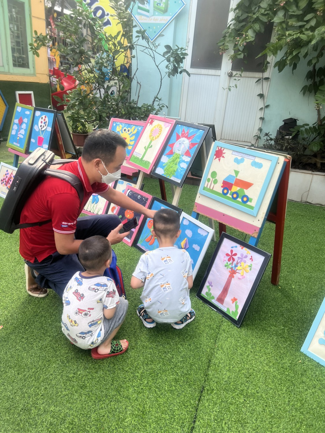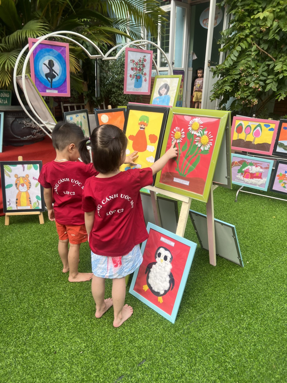 Mỗi một sản phẩm của các bé mang đến buổi triển lãm tranh của nhà trường một nội dung khác nhau. Các sản phẩm phong phú, đa dạng của các bé đã góp phần tạo nên không gian sáng tạo muôn màu sắc, chất liệu của buổi triển lãm tranh thật thú vị và bổ ích. Các bé đến từ các lớp mẫu giáo được các cô giáo lần lượt đưa đi tham quan triển lãm tranh. Những ánh mắt hồn nhiên, ngây thơ trầm trồ ngắm nghía khoe các tác phẩm của cá nhân thể hiện. Các tác phẩm đã giúp các bé được học hỏi thêm rất nhiều kiến thức mới, kỹ năng tạo hình mới, ý tưởng thể hiện nhiều nội dung sáng tạo khác nhau.