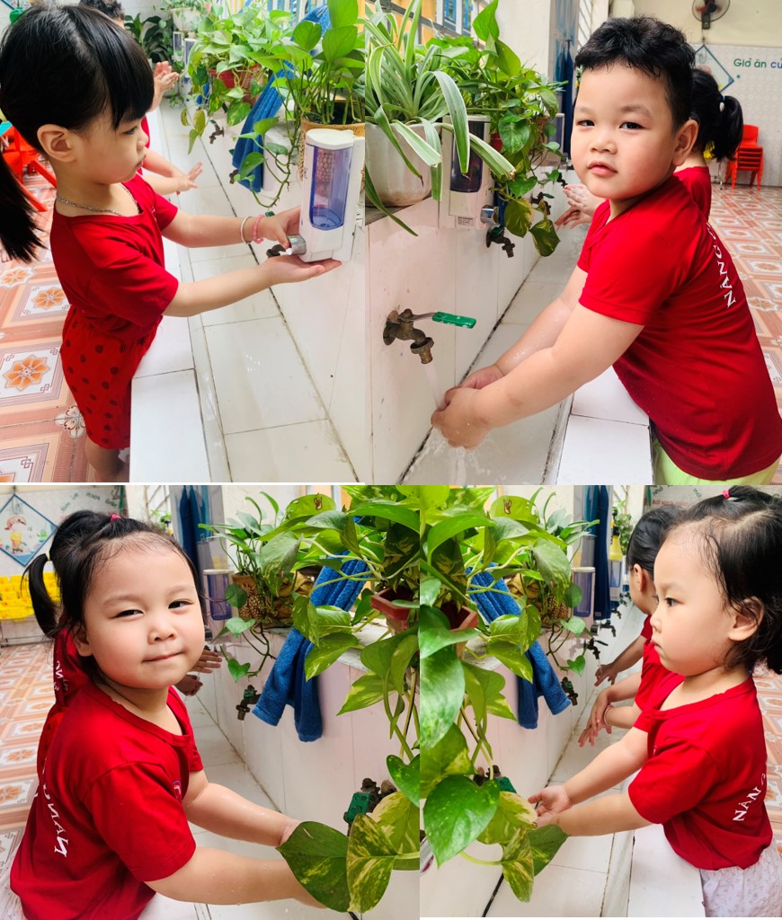 - Giáo dục trẻ thói quen rửa tay bằng xà phòng và nước sạch trước khi ăn, sau khi đi vệ sinh và khi tay bẩn; thích tắm gội sạch sẽ, rửa mặt, rửa tay trước khi đi ngủ; đánh răng sau khi ăn các bữa chính, buổi tối trước khi đi ngủ và buổi sáng sau khi ngủ dậy.