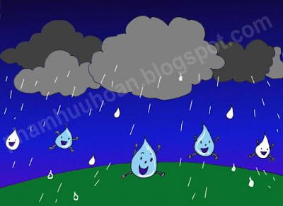 Bọn Tí Xíu níu lấy nhau thành những giọt nước trong vắt. Chúng thi nhau ào ào tuồn xuống đất... Cơn giông bắt đầu.
