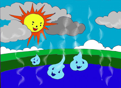 Nói xong ông Mặt Trời vén mây, chiếu thật nhiều ánh sáng xuống biển, Tí Xíu rùng mình và biến thành hơi. Chú chỉ kịp nói với biển cả :