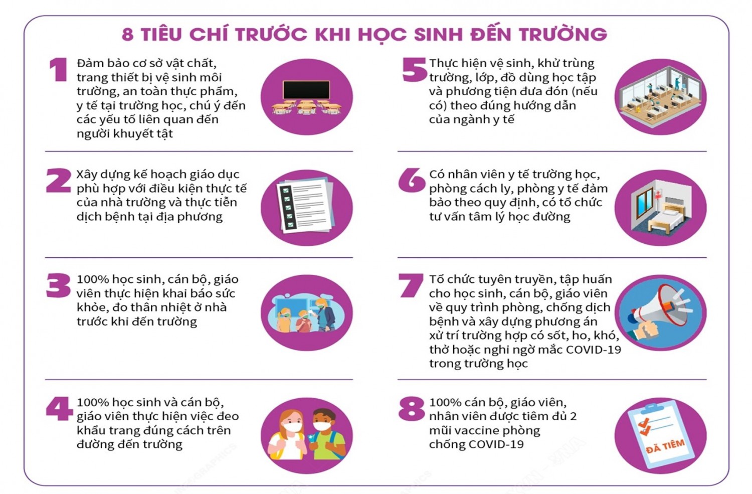 8 tiêu chí trước khi học sinh đến trường