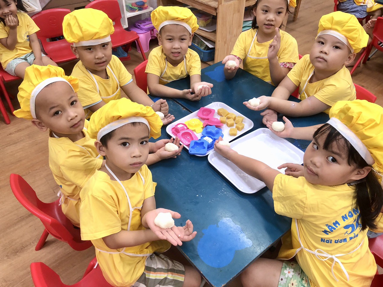 Và để giúp trẻ hiểu hơn về ý nghĩa của bánh trung thu, giúp các con hiểu được cách làm bánh như thế nào? Hôm nay, các bạn nhỏ Trường mầm non Họa My đã hiểu được ý nghĩa của ngày Tết trung thu tết của thiếu nhi qua hoạt động trải nghiệm cách làm bánh trung thu tại các lớp học của mình.