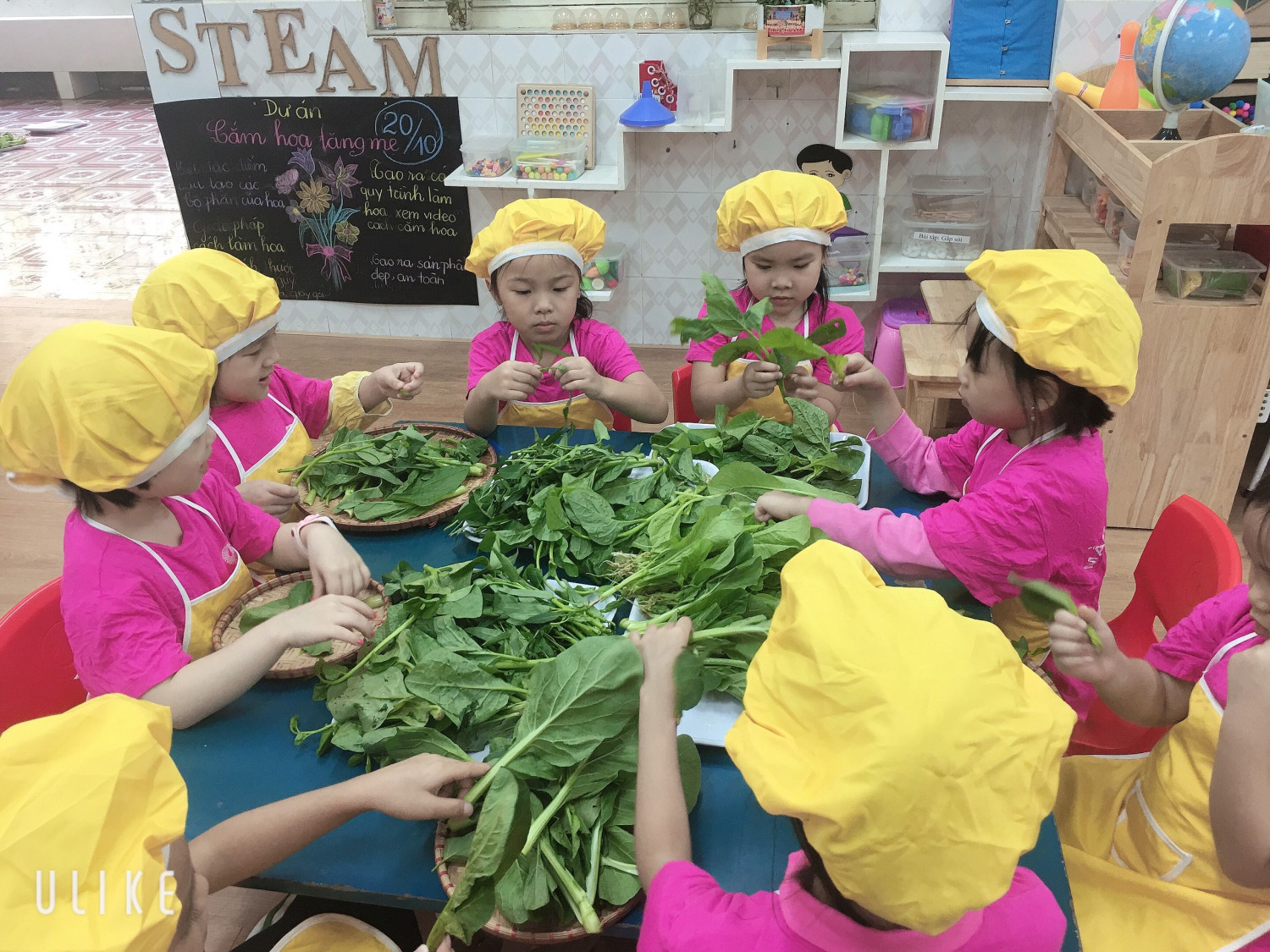 Dưới đây là một số hình ảnh trong giờ dạy kỹ năng nhặt rau của lớp MGL A1 (5-6Tuổi)